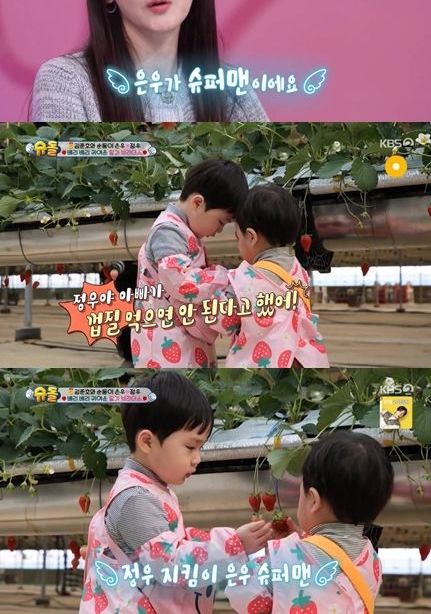 이 모습을 지켜본 박수홍은 "정우가 필요할 땐 은우가 꼭 나타나네", 최지우는 "은우가 슈퍼맨이다"라며 기특해했다.