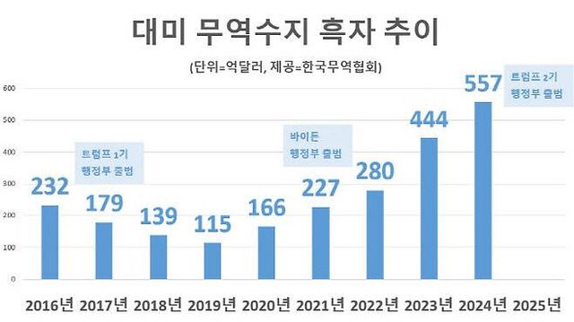 우리 역시 트럼프의 관세 압력에서 자유롭지 않다. 트럼프 1기 정부 때 115억달러까지 줄었던 한국의 대미 무역수지 흑자 규모는 지난해 557억달러로 5배 가까이 늘었다. 미국 기준 여덟 번째 적자국이다. 통상업계는 트럼프 2기 정부가 이 같은 불공정 무역을 빌미 삼은 관세 압력으로 자국 투자 확대나 주한미군 방위비 증액 같은 실익을 챙기려 할 것으로 전망하고 있다.