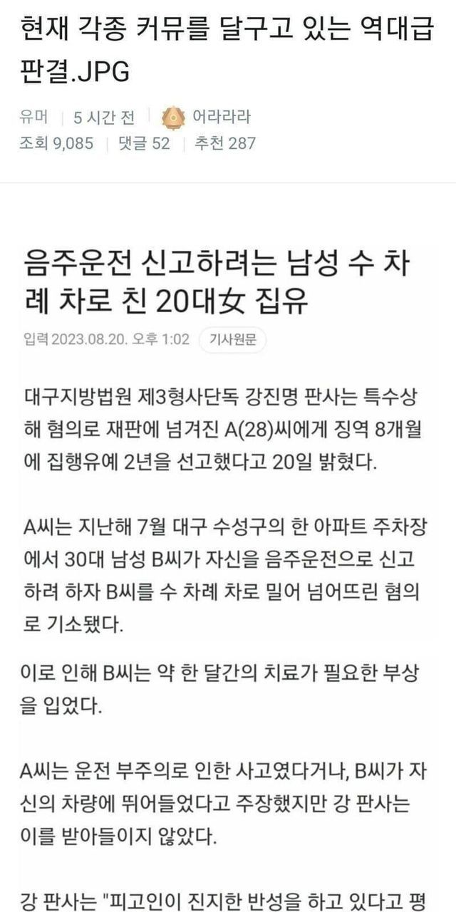20대 여자 음주 레전드급으로 전설적인 K판결