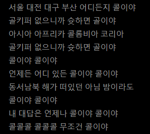 근데 마지막에 코리아, 골이야, 콜이야 라고 해서 아재개그인가 했는데