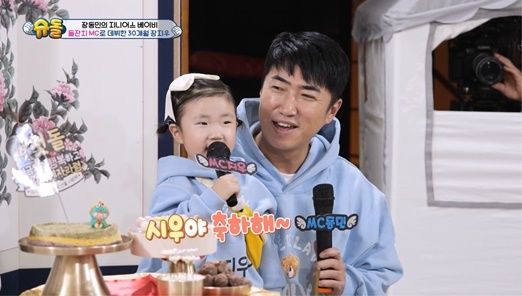 시우의 돌잔치가 본격적으로 시작됐고, 지우는 마이크를 들고 첫 MC로 데뷔해 30개월이라는 게 믿기지 않는 진행 실력을 뽐냈다. 지우는 동생 시우를 향해 애정 가득한 덕담은 물론, 일순간에 진행 톤으로 목소리를 바꾸는 등 진행 센스마저 아빠를 닮은 붕어빵 면모로 감탄을 자아냈다. 장동민은 “지우, 시우야 아빠는 너희를 위해 뭐든 할 수 있어”라며 사랑이 가득 담긴 편지를 전하며 눈시울을 붉혀 감동을 선사했다.