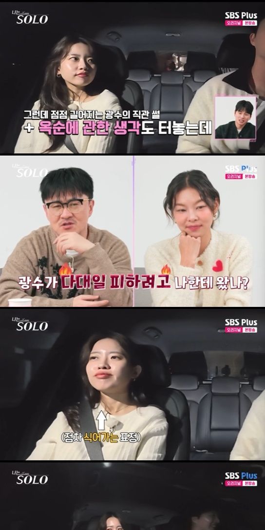 광수는 옥순단 탄생의 순간을 직관한 후일담을 언급하며 "나도 옥순님과 데이트해봤고 옥순님은 자기가 예쁜 것도 알고 자기가 어떤 남자를 마음에 둔다기 보다 열어놓고 만나는 스타일 같다"라며 옥순의 이야기를 길게 늘어놓았다.