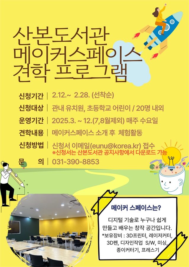 (군포=뉴스영 공경진 기자) 군포시 산본도서관이 어린이들을 위한 ‘메이커스페이스 견학 프로그램’을 새롭게 기획해 2025년 3월부터 운영을 시작한다.
