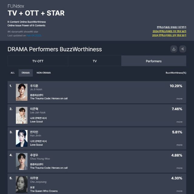 주지훈은 ‘중증외상센터’를 통해 인생작, 인생 캐릭터라는 호평을 받으며 각종 지표를 휩쓸고 있다.