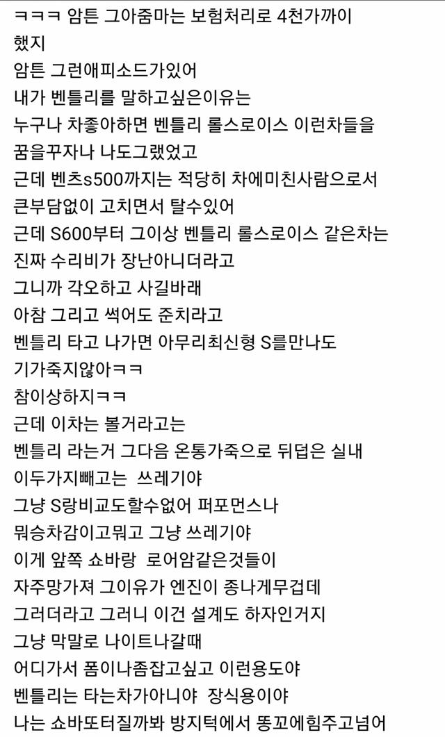 벤틀리 중고로 무리해서 구매한 썰