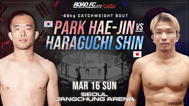 ROAD FC는 3월 16일 서울 장충체육관에서 열리는 굽네 ROAD FC 072에서 박해진과 하라구치 신(일본)이 -68kg 계약 체중 경기를 치른다고 5일 밝혔다.