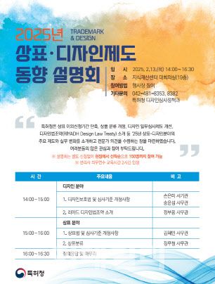 한편 이번 설명회는 별도 신청없이 현장에서 선착순으로 150명까지 참여 가능하며, 변리사의 경우 의무연수 교육시간 2시간이 인정된다.