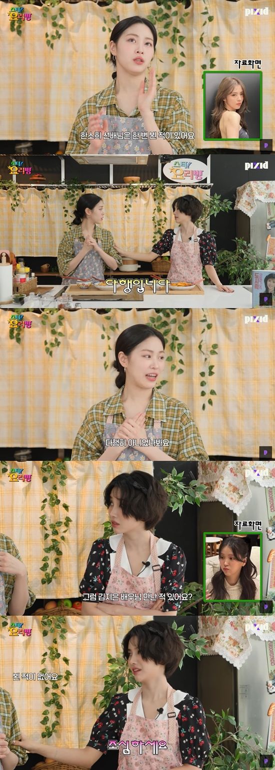 완성된 볶음라면을 먹은 뒤 만족감을 표한 쏘리사(전소연 부캐)는 "류진 씨 말투나 마스크도 그렇고 되게 배우 같다"고 칭찬한 뒤 "배우분들 닮은꼴로 유명하더라"며 한소희, 손나은, 김지은 등의 이름을 언급했다.
