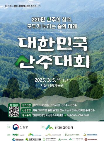 대한민국 산주대회는 ‘세계 산림의 날(3월 21일)’을 기념해 산주를 대상으로 임업정보와 산림경영 우수사례를 교류하는 행사로 산림청 주최, 산림조합중앙회 주관으로 내달 5일 서울 장충체육관에서 열린다. 참가자격은 산을 소유한 산주면 누구나 가능하며, 온라인(QR코드 신청)이나 전화를 통해 접수 가능하다.