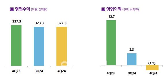 연간 기준으로는 영업수익은 1조1964억원으로 전년 대비 0.5% 증가했고, 영업이익은 135억원으로 98.6% 감소했다.