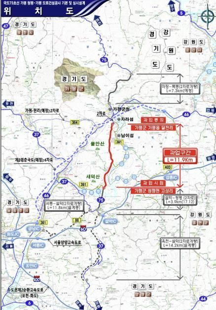 [와이뉴스] 총공사비 1,000여억 원이 투입되는 국도75호선 도로정비 사업이 추진돼 가평읍과 청평‧설악면 간 통행 여건이 크게 개선될 전망이다. 이번 사업을 통해 도로 선형 불량에 따른 통행 불편 해소는 물론, 수도권과의 접근성 향상으로 지역경제 활성화도 기대된다.