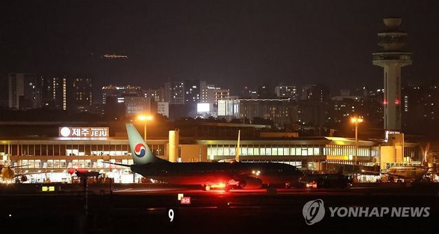 제주공항 활주로에 멈춰 선 여객기 / 연합뉴스