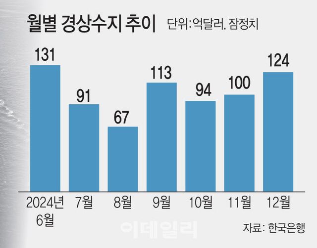 한편, 한은은 오는 25일 최근 상황을 반영한 성장률과 물가 등 경제전망을 발표한다. 미국의 관세 정책이 가시화하고 있는 가운데 경상수지 전망치가 어떻게 조정될지에도 관심이 쏠리고 있다. 한은은 지난해 11월 경제전망에서 고사양 반도체를 중심으로 수출 금액이 높은 수준에서 꾸준히 증가하고, 수입은 국제유가 하락으로 증가폭이 제약되면서 올해 경상수지가 800억달러를 기록할 것으로 예상했다.