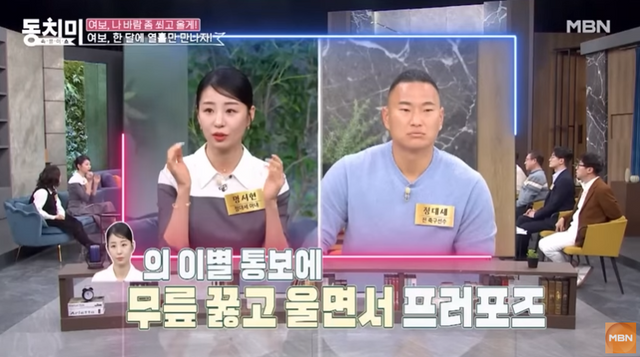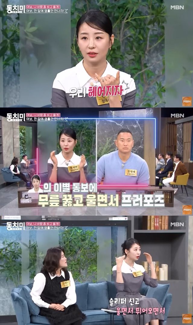 이에 정대세가 "갑자기 무릎을 꿇고, 울면서 '결혼을 하자'고 프로포즈를 했다. 슬리퍼 신고 울면서 뛰어왔다"고 말했다.