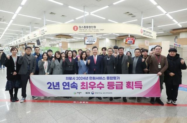 [와이뉴스] 의왕시는 행정안전부와 국민권익위원회가 주관하는 ‘2024년 민원서비스 종합평가’에서 역대 최고점으로 ‘가’ 등급을 획득하며 2년 연속 최우수기관에 선정됐다고 6일 밝혔다.