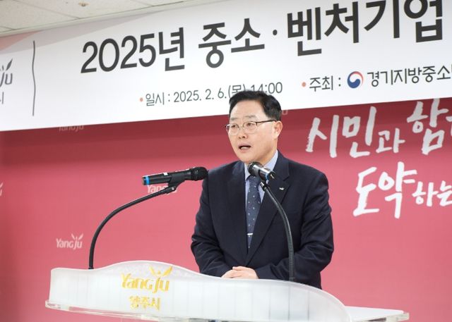 강수현 양주시장이 6일 시청 대회의실에서 개최된 ‘2025년 중소벤처기업 지원 시책 설명회’에 참석해 관내 기업인들을 격려하고 지역 경제 활성화를 위한 적극적인 지원을 약속했다.