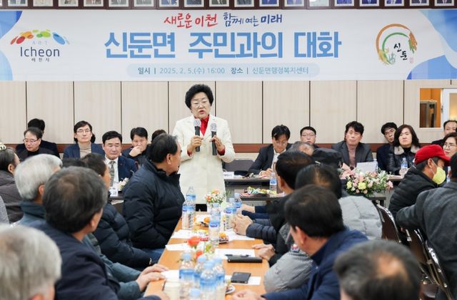이번 신둔면 주민과의 대화는 시민의 행복을 최우선 가치로 하는 민선 8기 김경희 이천시장이 2025년도 시정 운영 방향을 공유하고 주민 건의 사항을 수렴하는 소통행정을 위해 마련한 자리로 박명서 시의회 의장을 비롯한 도·시의원, 신둔면의 각 기관·단체장들과 예술인 등이 참석했다.