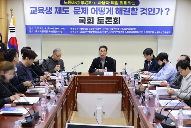 [와이뉴스] 더불어민주당 김주영·이용우 의원, 더불어민주당 노동존중실천단, 공공운수사회서비스노조 더불어사는희망연대본부, 노동인권 실현을 위한 노무사모임 노동자성연구분과가 공동주최한 '노동자성 부정하고 사용자 책임 회피하는 ‘교육생 제도’ 문제 어떻게 해결할 것인가?'' 국회토론회가 6일 오전 국회 의원회관 제6간담회의실에서 열렸다.