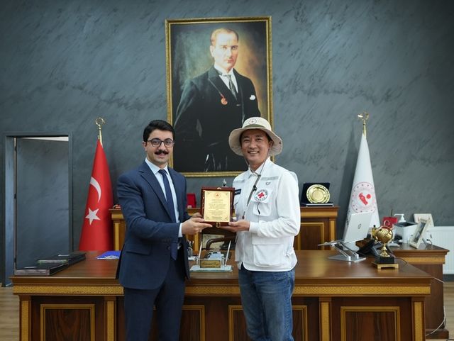 지난해 4월 튀르키예 지진 피해 구호활동에 참여한 안재욱 홍보대사가 대한적십자사를 대표해 파잘직 시장으로부터 대한적십자사의 구호활동에 대한 감사패를 전달받았다(사진출처: 대한적십자사) |
