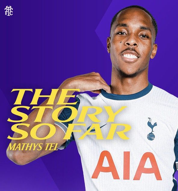 토트넘에 합류한 텔은 2005년생 프랑스 국적의 공격수다. 스트라이커와 윙어로 활약한다. 지난 2022년 뮌헨에 합류했다.