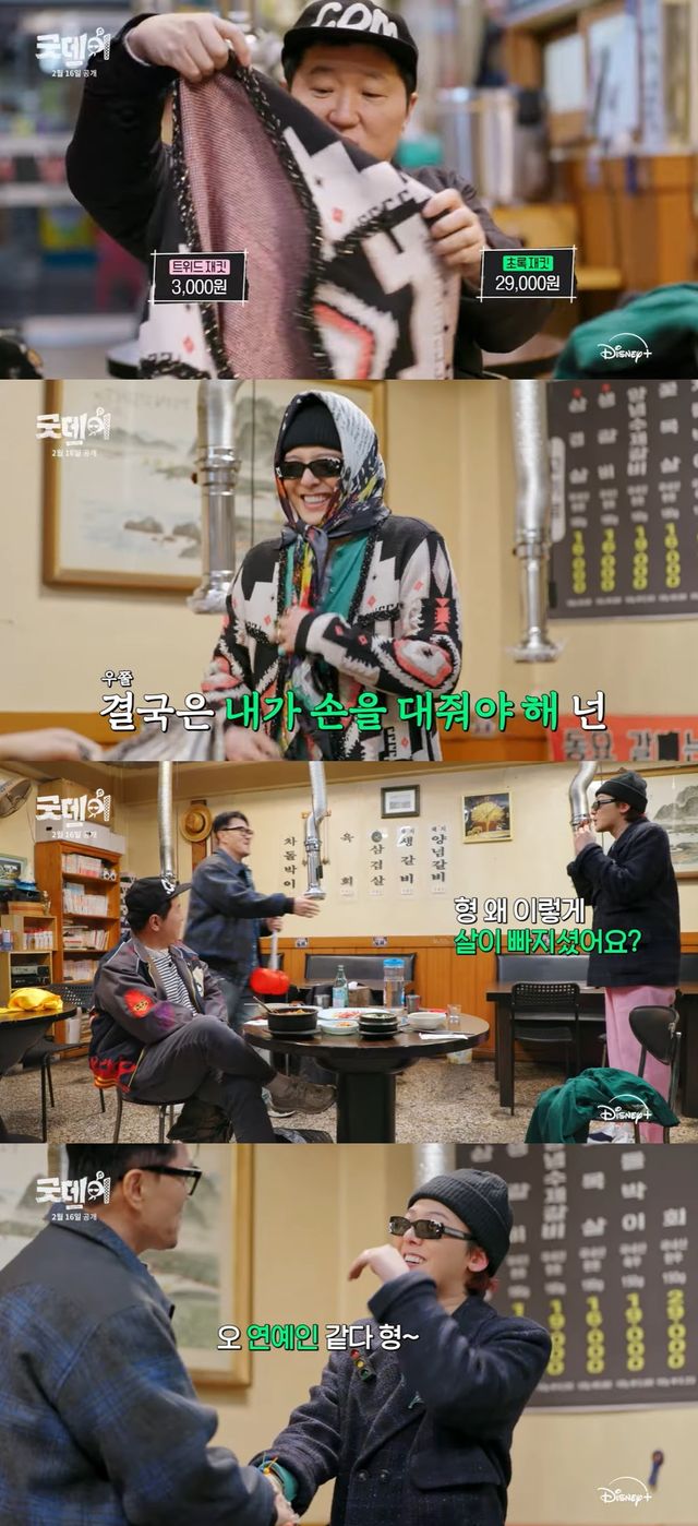 이날 정형돈은 지드래곤에게 '동묘 시장' 패션 아이템을 선물했고, 지드래곤은 이를 완벽히 소화해 눈길을 끌었다.