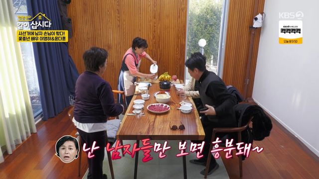 6일 방송된 KBS 2TV '박원숙의 같이 삽시다'(이하 '같이 삽시다')에서는 남자들과의 역사적인 첫 같이 살이가 시작됐다.