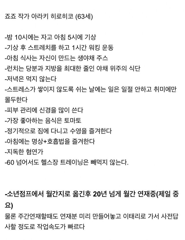 토리야마 부고소식으로 본 죠죠 작가의 건강 관리법