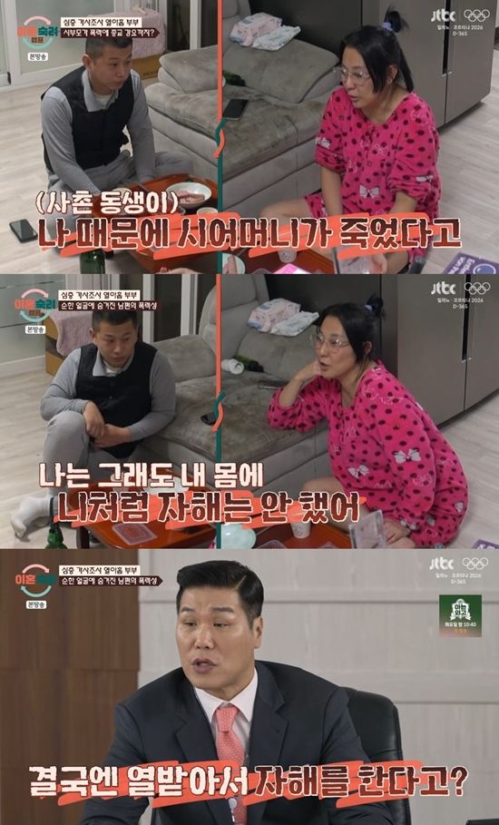 시어머니한테 '정신 병원에 보내버린다' 등의 폭언까지 들었다는 아내는 "이혼하기로 결심했을 때 남편보다 시댁 식구들이 너무 꼴 보기 싫어서 그 집에서 벗어나고 싶었다. 아니면 제가 죽을 것 같더라"라고 이야기했다.