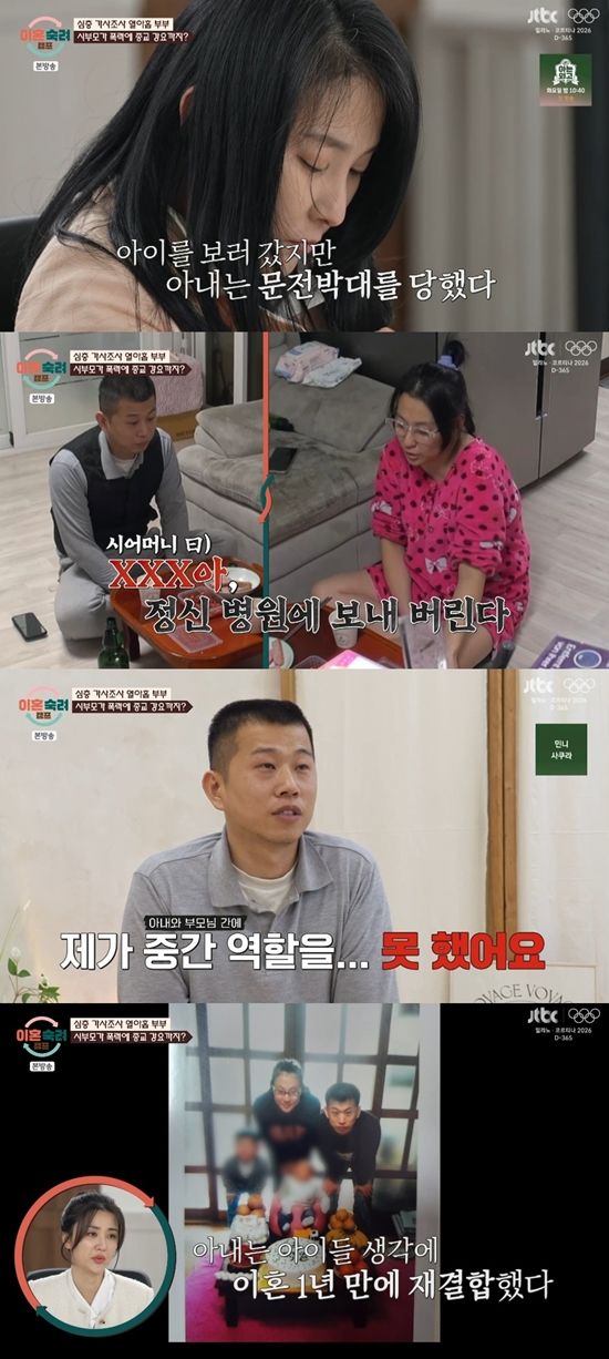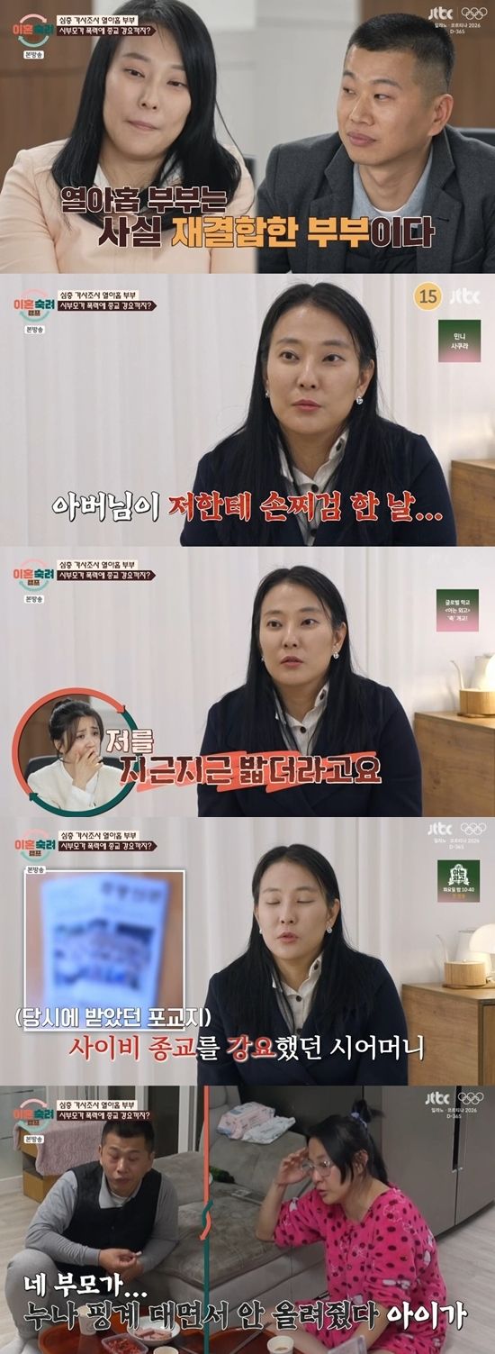 결국 아내는 아이들이 안쓰러워 이혼 1년 만에 재결합을 하게 됐다. 하지만 시부모의 술주정과 종교 강요는 계속됐고 남편은 변함없이 중재 역할을 하지 못했다고.
