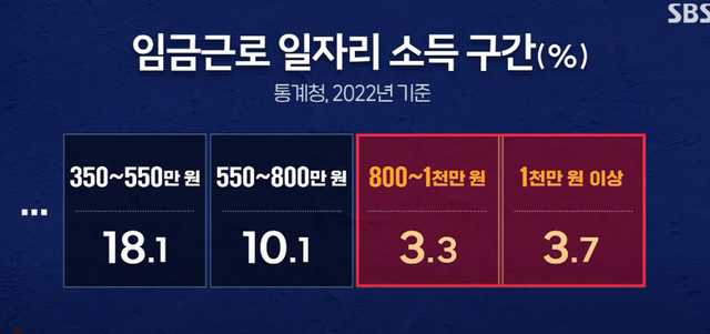 다음으로 통계에서 고소득 층으로 분류 되는 임금 근로자 현황
