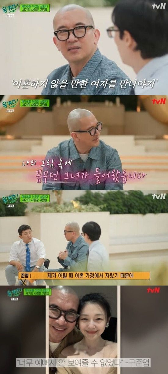 구준엽은 2022년 6월 방송된 tvN '유퀴즈'에서 처음 서희원을 만나 교제한 뒤 헤어졌던 과정을 상세히 전하기도 했다. 당시 그는 "20년 전에 희원이가 내게 '이런 여자 아니면 결혼하지 말아야지'라는 기준을 만들어줬다. 제가 어릴 때 이혼가정에서 자랐기 때문에 이혼하지 않을 여자를 만나야겠다고 생각했었다"고 털어놨다.