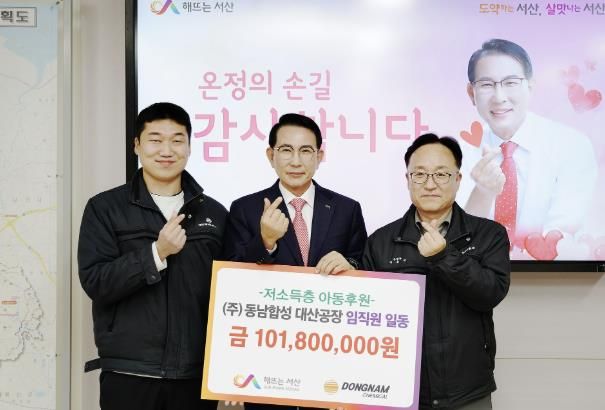 [파이낸셜경제=김영란 기자] 충남 서산시는 6일 ㈜동남합성 대산공장이 관내 저소득층 아동의 건강한 성장을 지원하기 위해 올해 2천450만 원을 후원했다고 밝혔다.