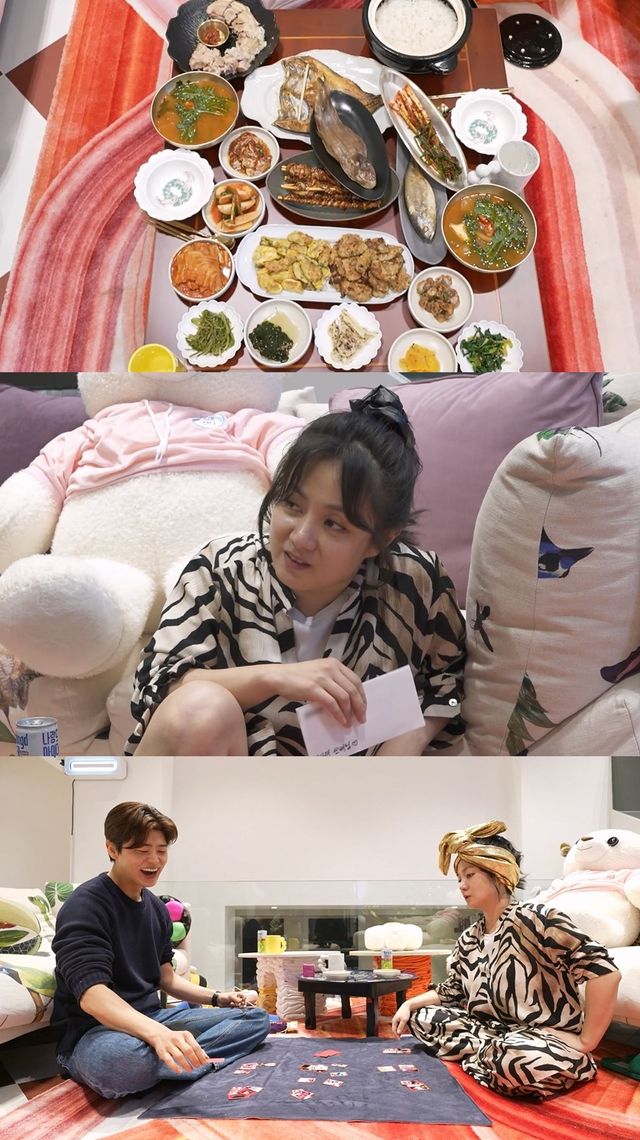 각종 나물을 비롯해 전, 생선, 수육 등 자리가 모자라 겹겹이 쌓인 접시에도 박나래는 "먹잘 것이 없어요"라며 '목포 동생' 박지현에게 더 맛있는 것들을 해주지 못해 아쉬워한다고.