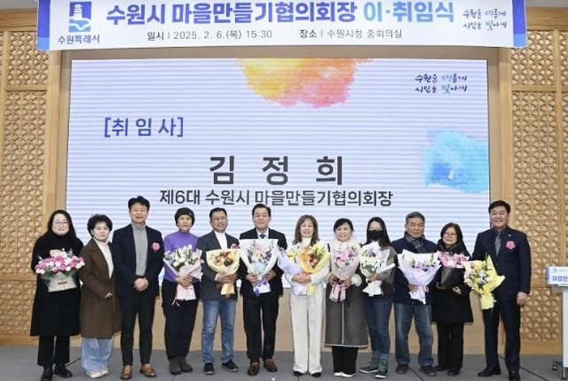 수원시는 6일 시청 중회의실에서 ‘수원시 마을만들기협의회장 이·취임식’을 개최했다.