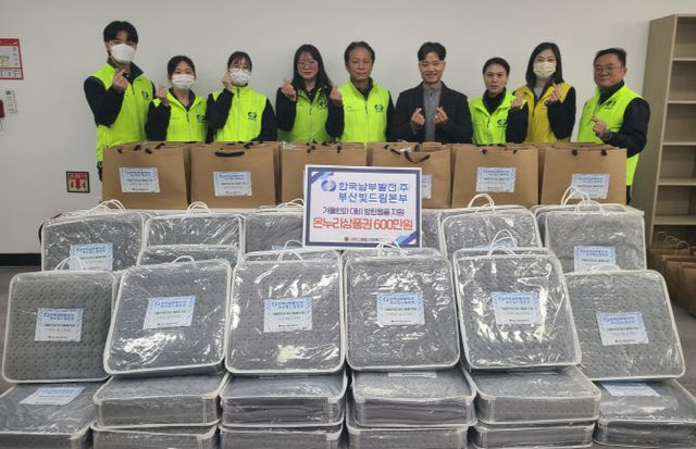 부산 본사는 부산 연탄은행을 통해 200가구에 절전매트 100개와 발열 내의 181세트를 기부했고 각 발전본부도 지역 주민에 겨울이불과 연탄, 난방유, 방한의류를 지원했다.