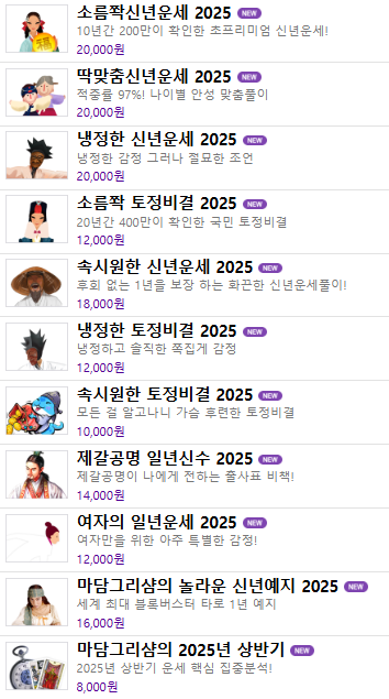 • 소름쫙 신년운세 2025: 나에게 일어날 모든 일을 알 수 있는 상품