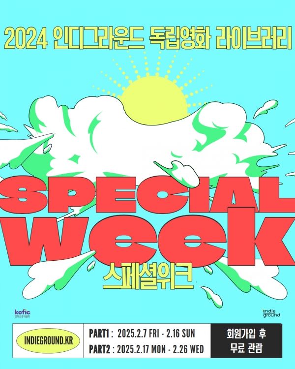 한편, 인디그라운드는 한국 독립예술영화의 유통·배급 환경 개선을 위해 영화진흥위원회(위원장 한상준)에서 설립한 독립·예술영화 유통·배급 지원센터다. 이번 스페셜 위크 종료 후 단체는 다양한 키워드의 큐레이션 상영을 통해 순차적으로 라이브러리 작품들을 소개한다.
