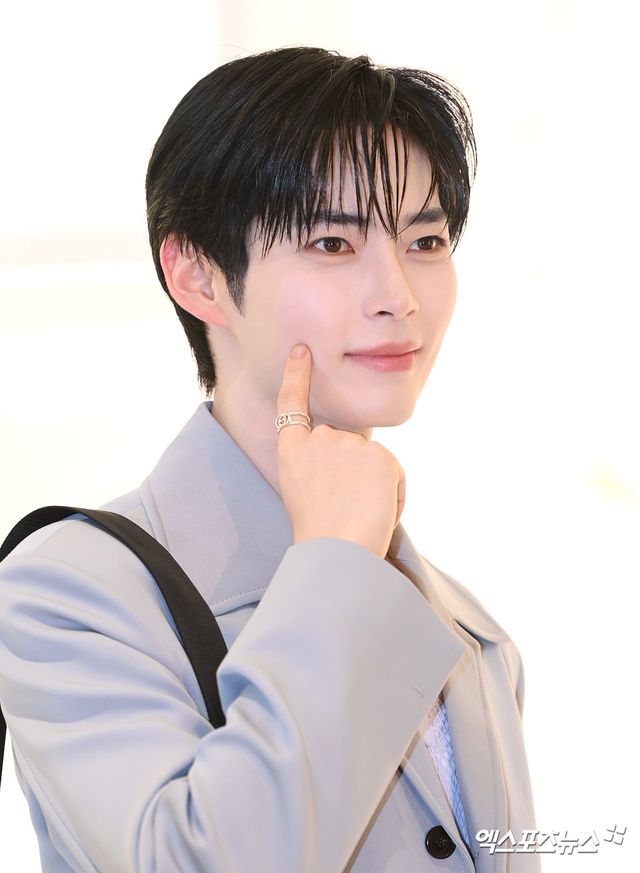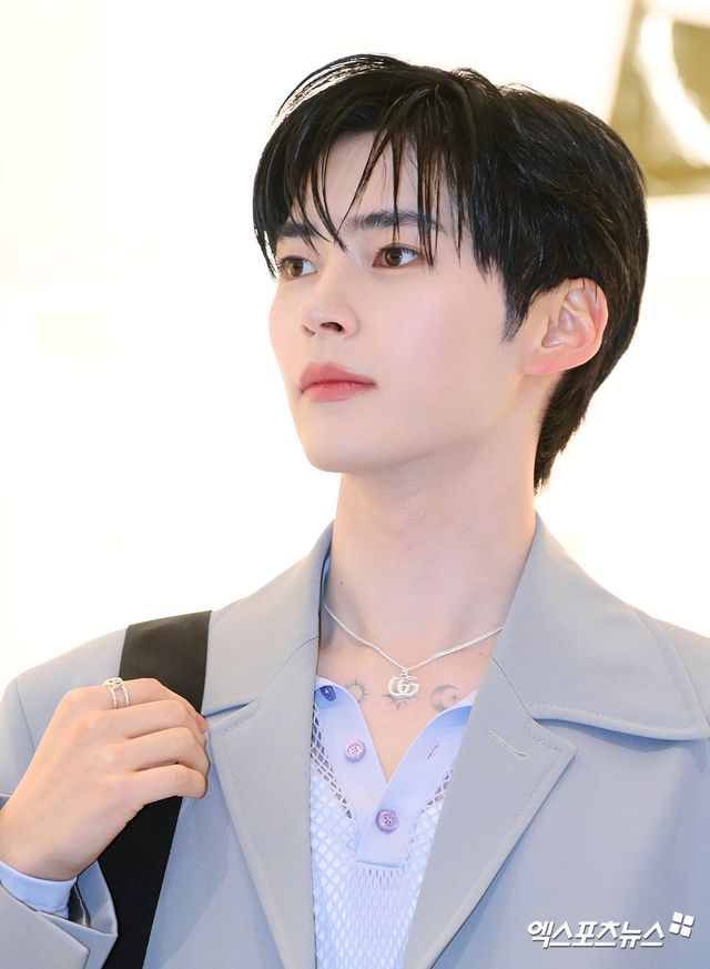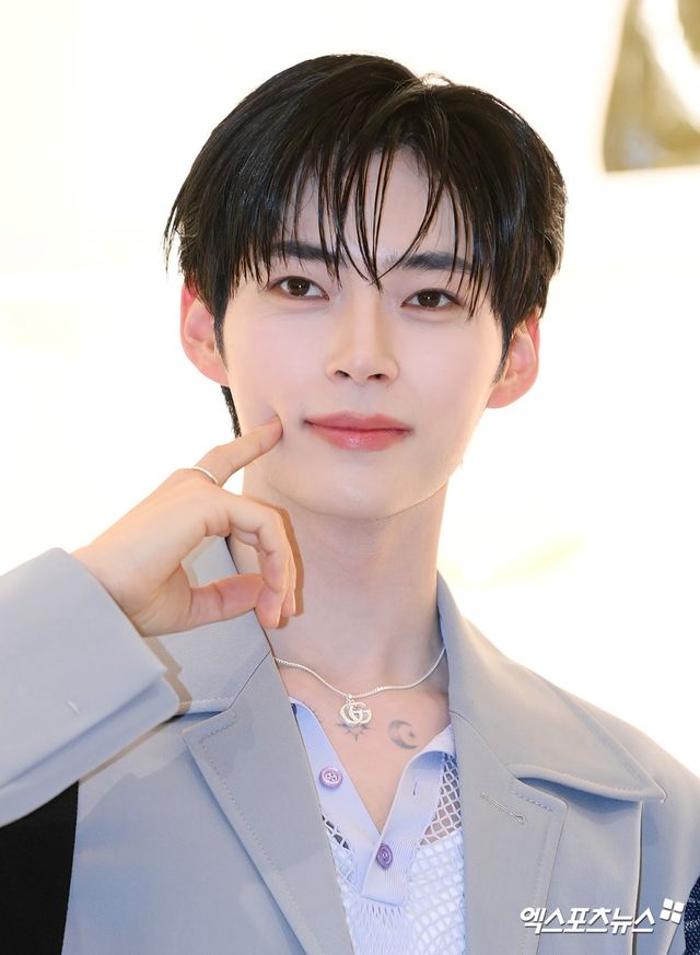 이날 행사에 참석한 제로베이스원 성한빈이 포토타임을 갖고 있다.