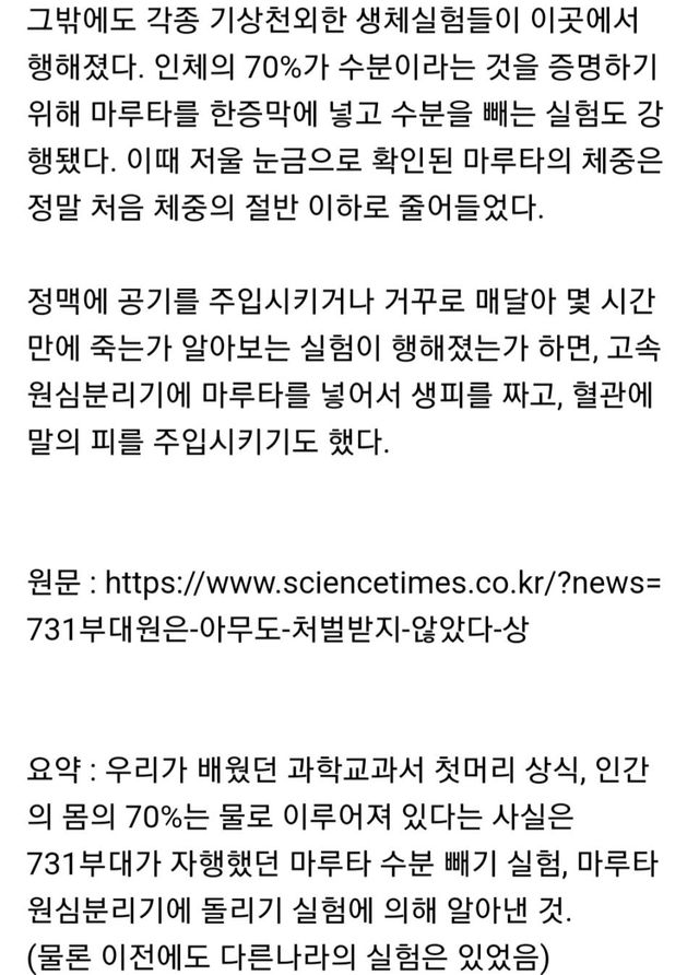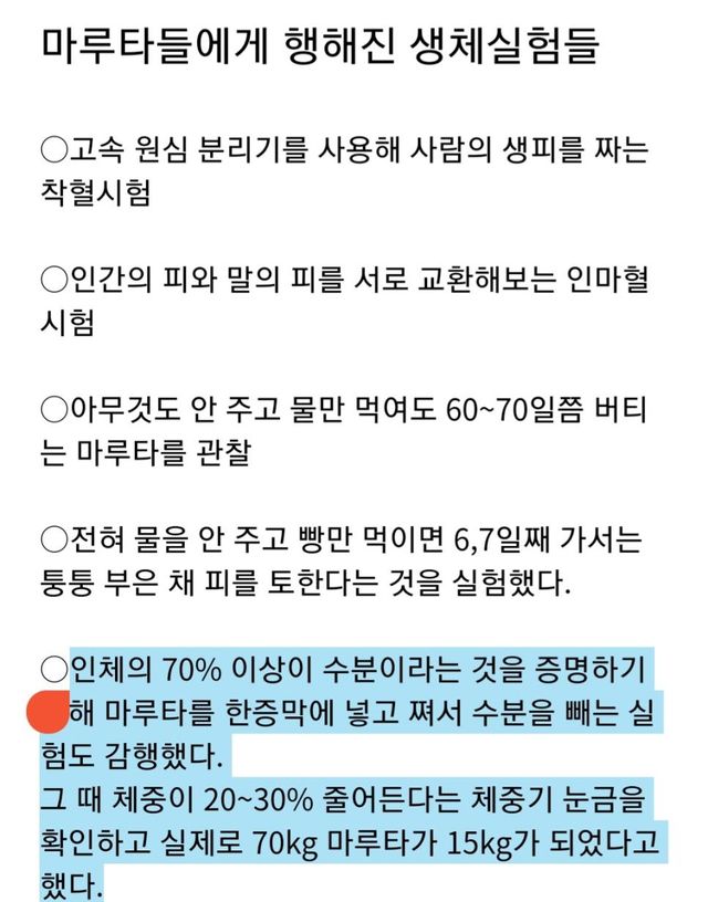 731부대의 실제 사람을 단순무식하게 극한까지 말려버리는 방법으로 알아냈다고 함