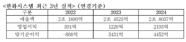 한화시스템(272210)은 지난해 연결재무제표 기준 매출 2조8037억원, 영업이익 2193억원을 달성해 전년 대비 각각 14.3%와 78.9%가 증가했다고 7일 밝혔다. 당기순이익도 29.8% 증가한 4452억원으로 매출·영업이익·당기순이익 모두 최대 실적을 기록했다.