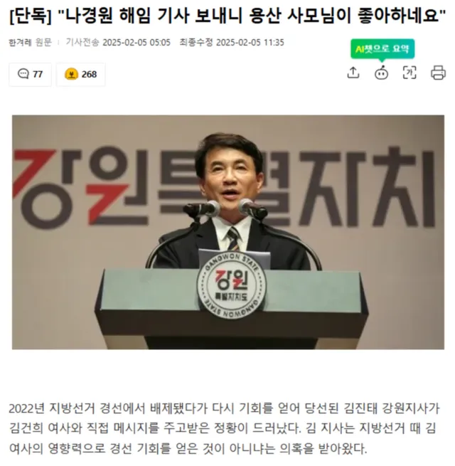 "나경원 해임 기사 보내니 용산 사모님이 좋아하네요"