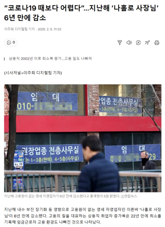 “코로나19 때보다 어렵다”.. 지난해 ‘나홀로 사장님’ 6년 만에 감소