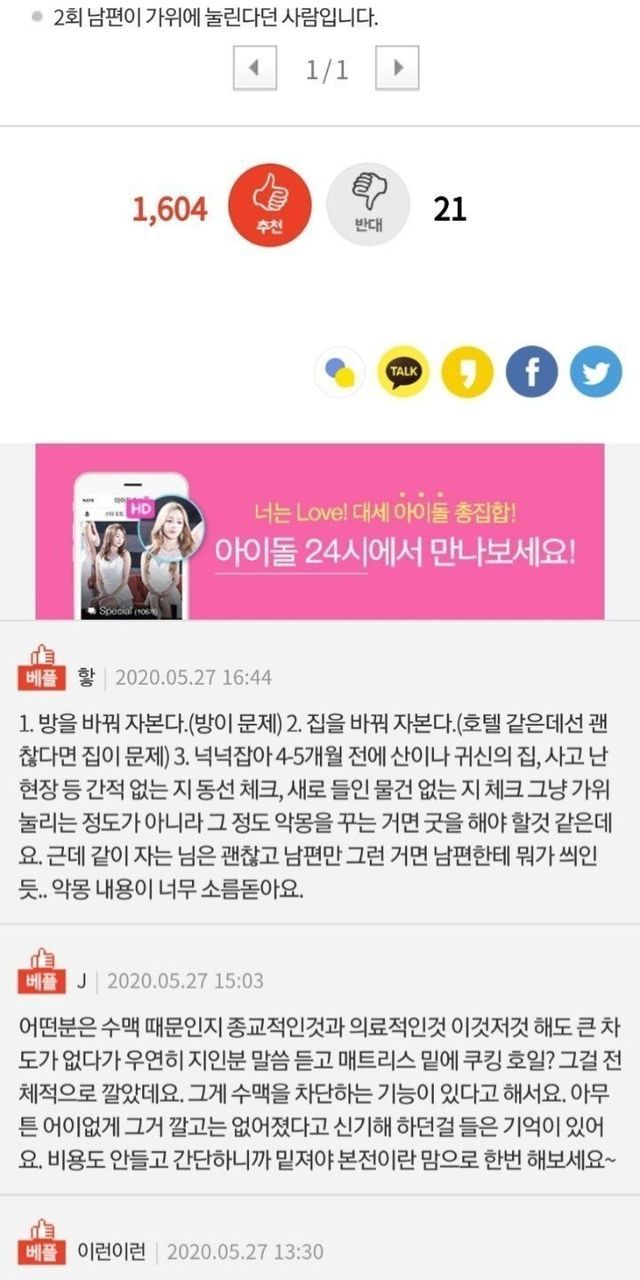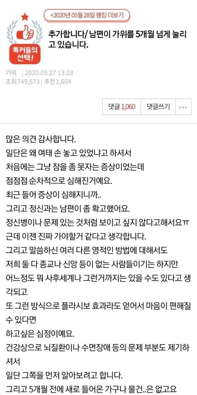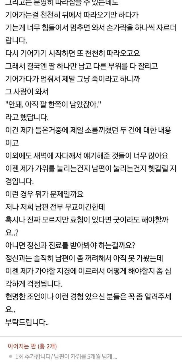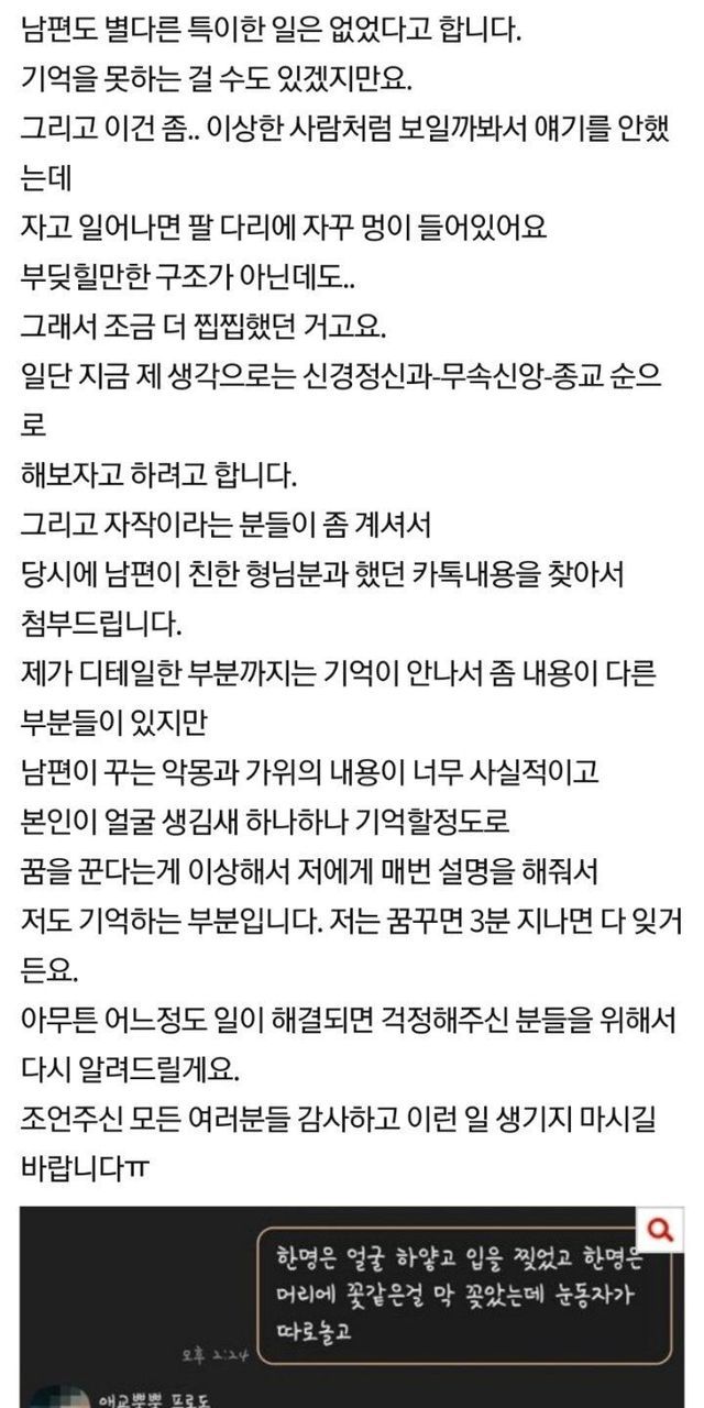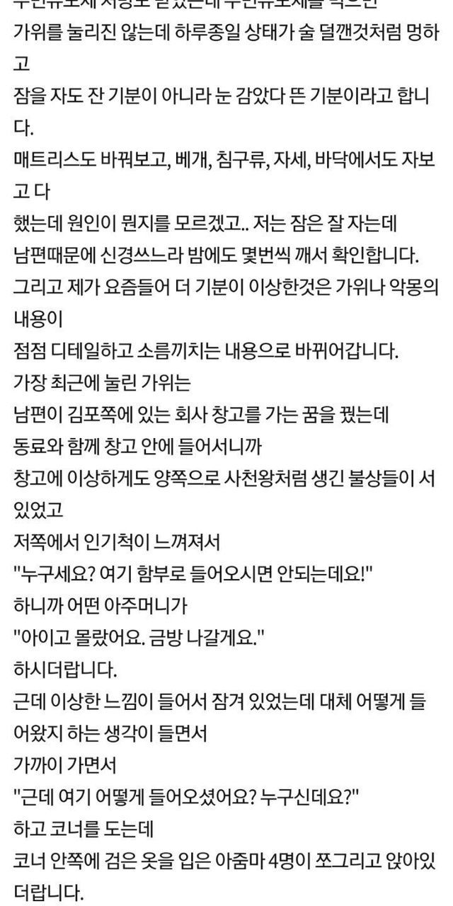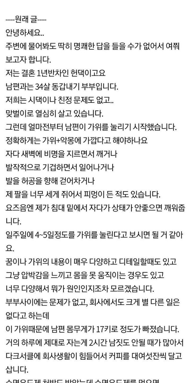 남편이 5개월동안 가위에 눌러서 도와달라는 아내