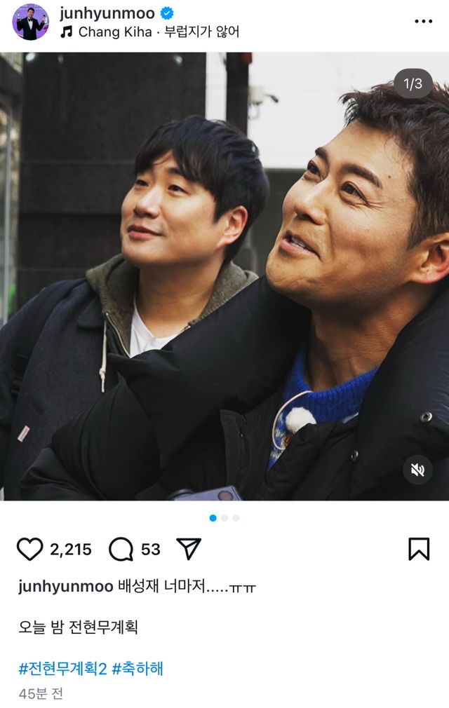 전현무는 7일 자신의 SNS에 배성재와 함께 찍은 사진을 게재하며 “배성재 너마저.....ㅠㅠ”라고 남겼다. 그는 이어 이날 오후 배성재와 함께 출연하기로 예정된 ‘전현무계획2’를 언급하며 “오늘 밤 전현무계획”이라고 남겼고 ‘#전현무계획2 #축하해’라고 태그를 달았다.