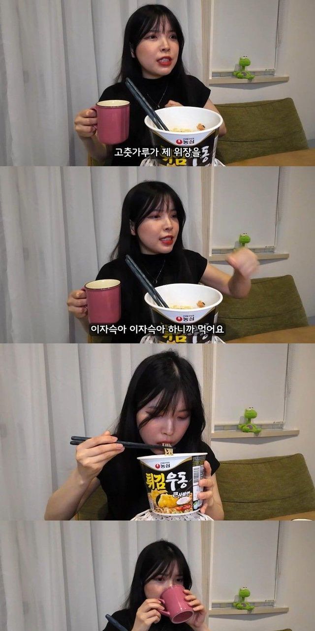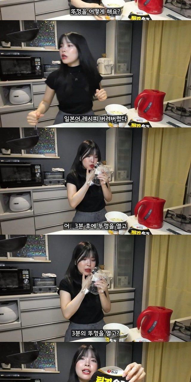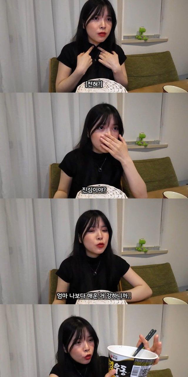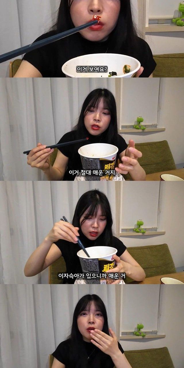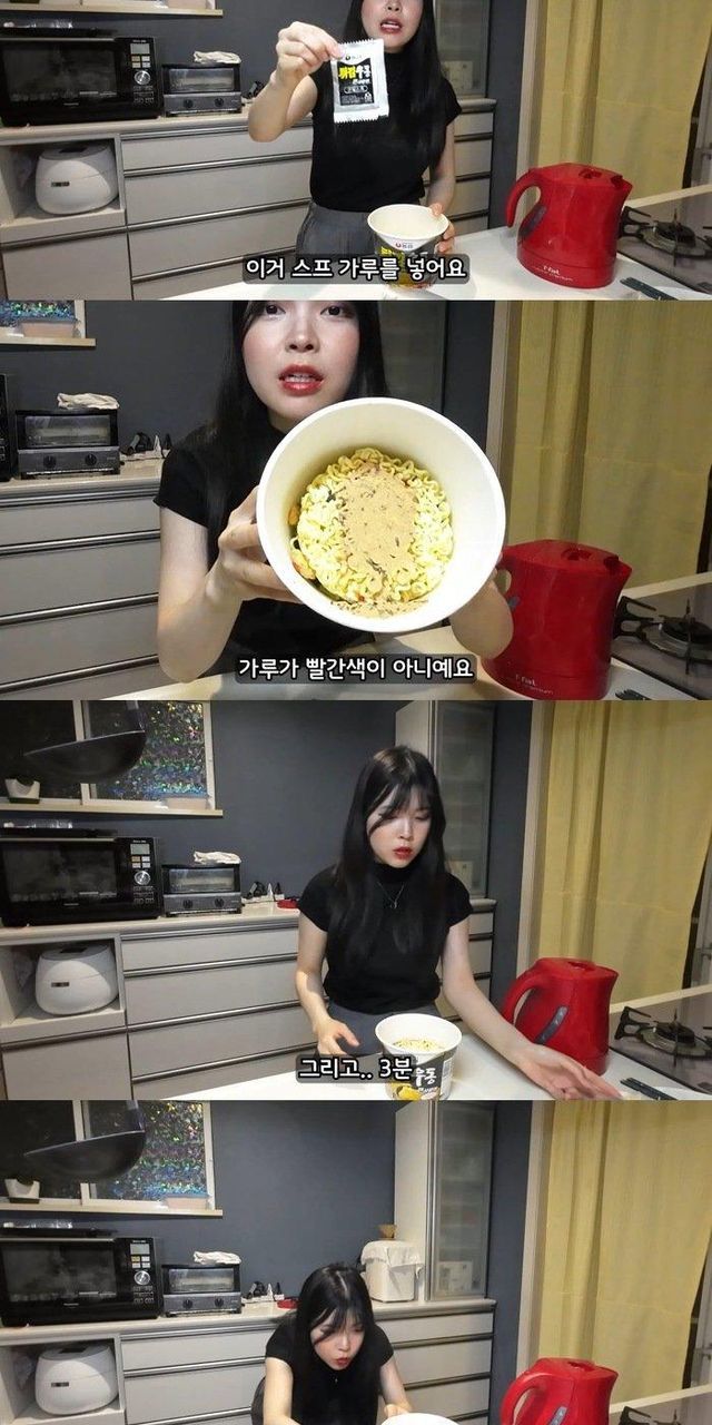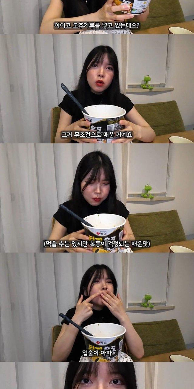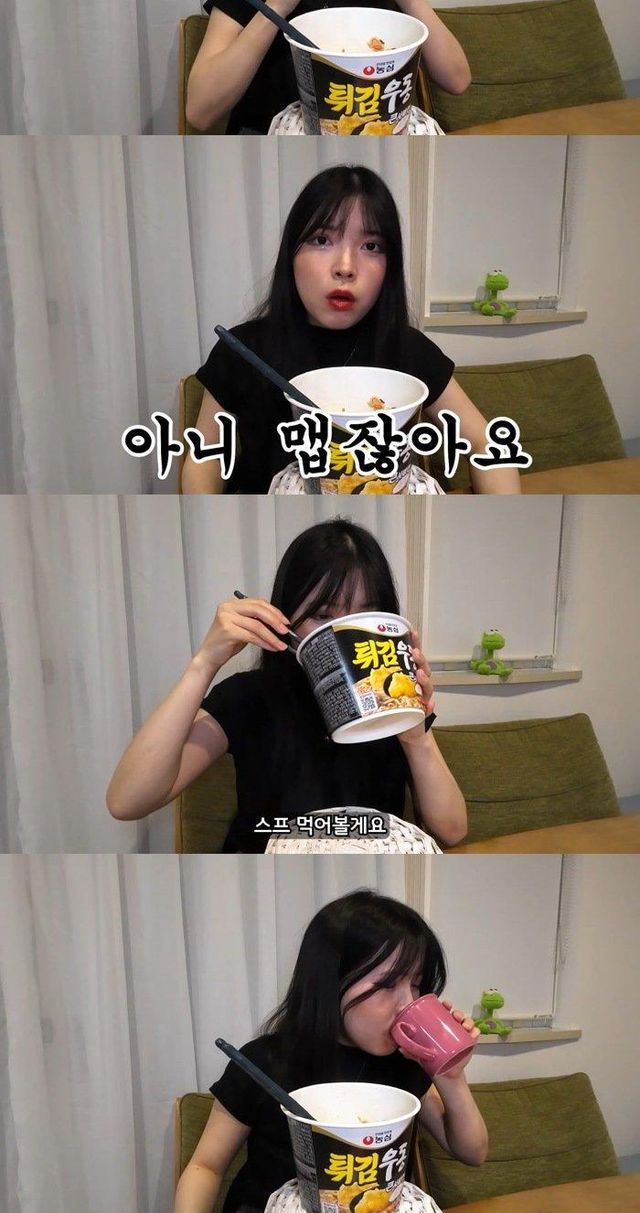 안 맵다는 튀김우동 컵라면 먹어보는 일본인.jpg