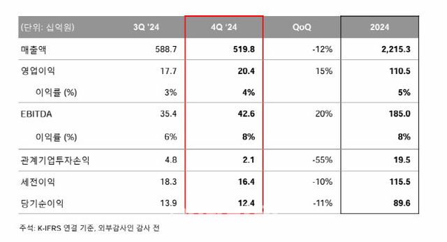 OCI는 지난 4분기 매출액은 5198억원으로 전분기대비 12% 감소했다고 밝혔다. 영업이익의 경우 204억원을 기록하며 전분기 대비 15% 증가했다.