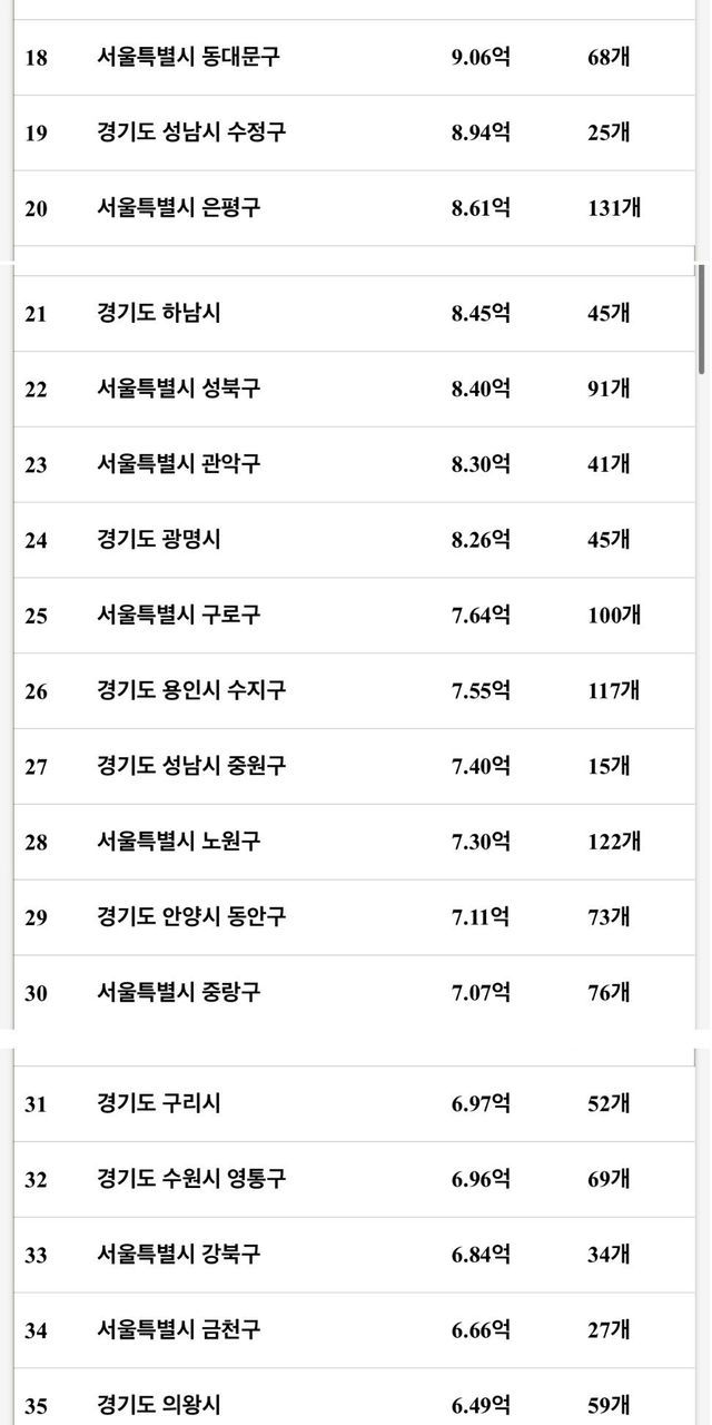 전용면적 25평 공급면적 32-33평대 아파트 평균 집값