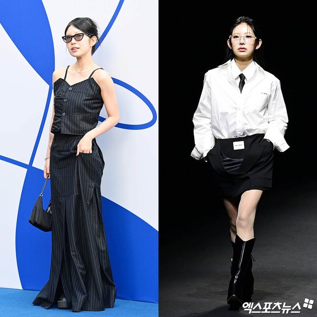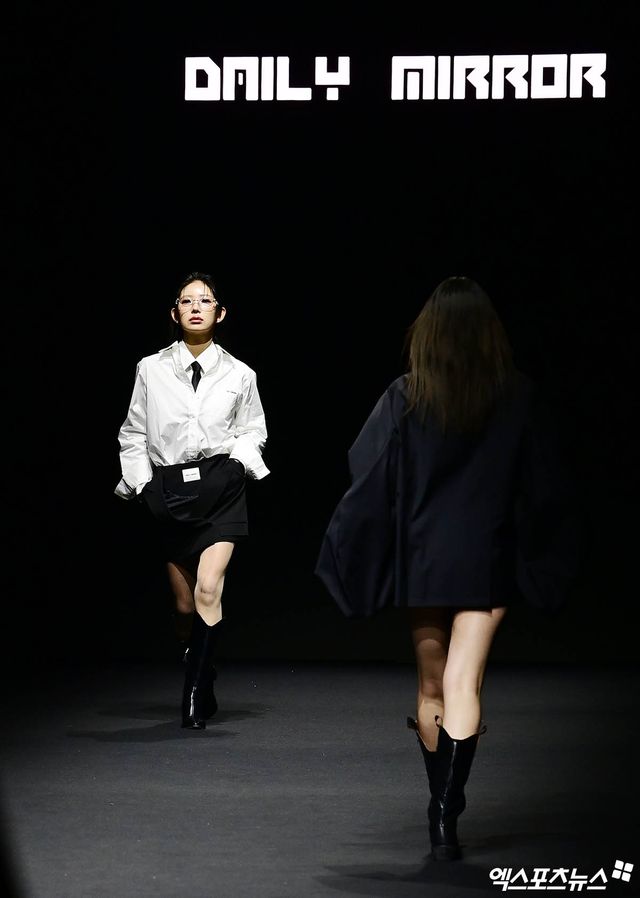 화이트 셔츠와 블랙 팬츠, 블랙 롱 부츠에 은테 안경으로 긱시크 스타일을 완성했다. 자신감 넘치는 워킹으로 런웨이를 걷는 최준희를 최환희가 객석에서 바라보는 모습도 포착되며 훈훈함을 자아냈다.