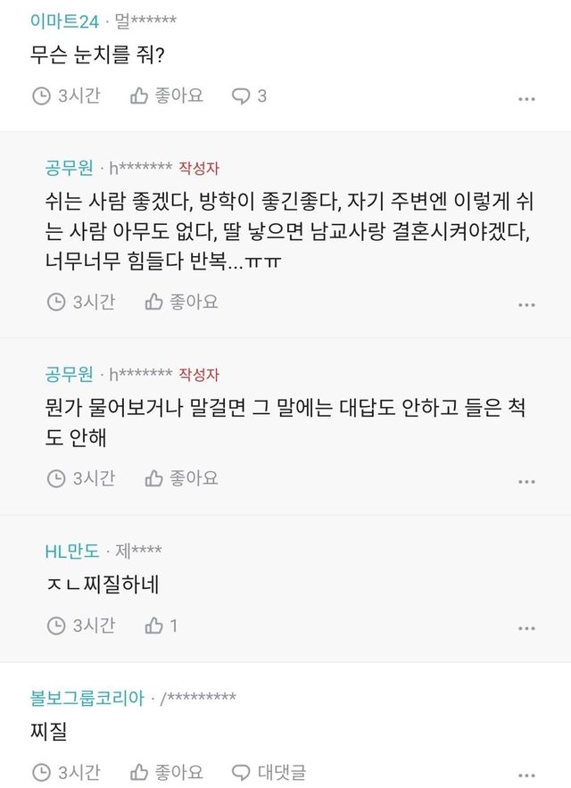 방학으로 눈치주는 남편