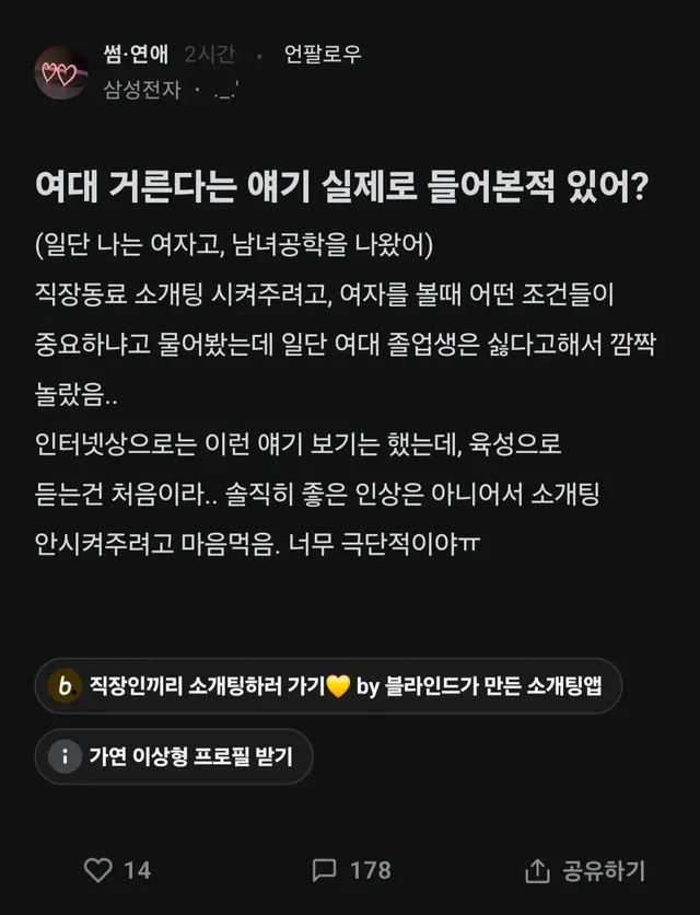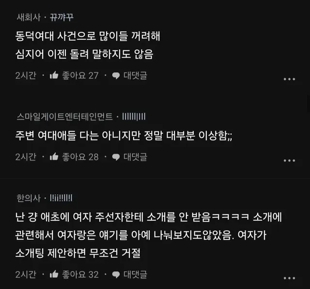 여대 거른다는 얘기 실제로 들어본 적 있어?